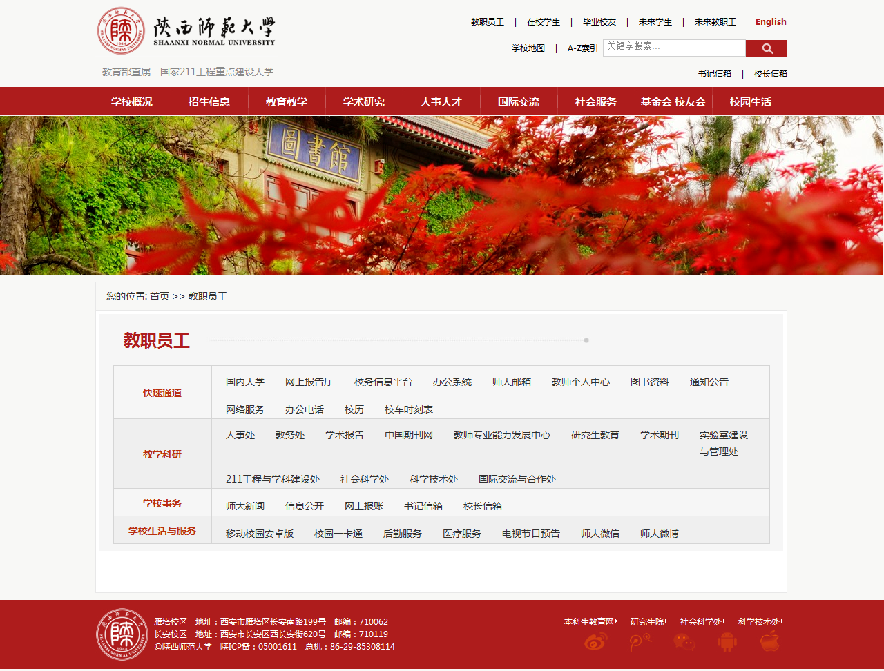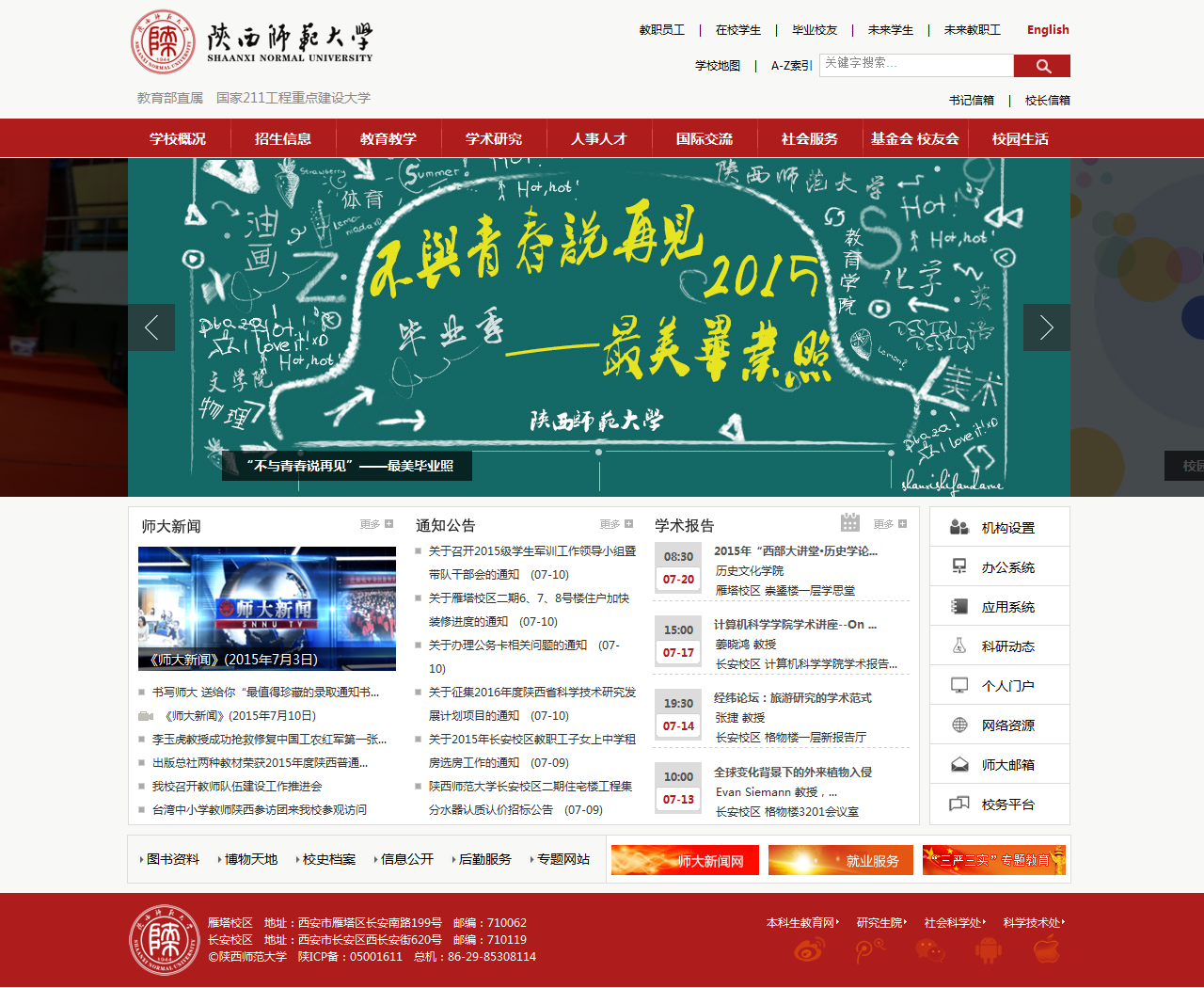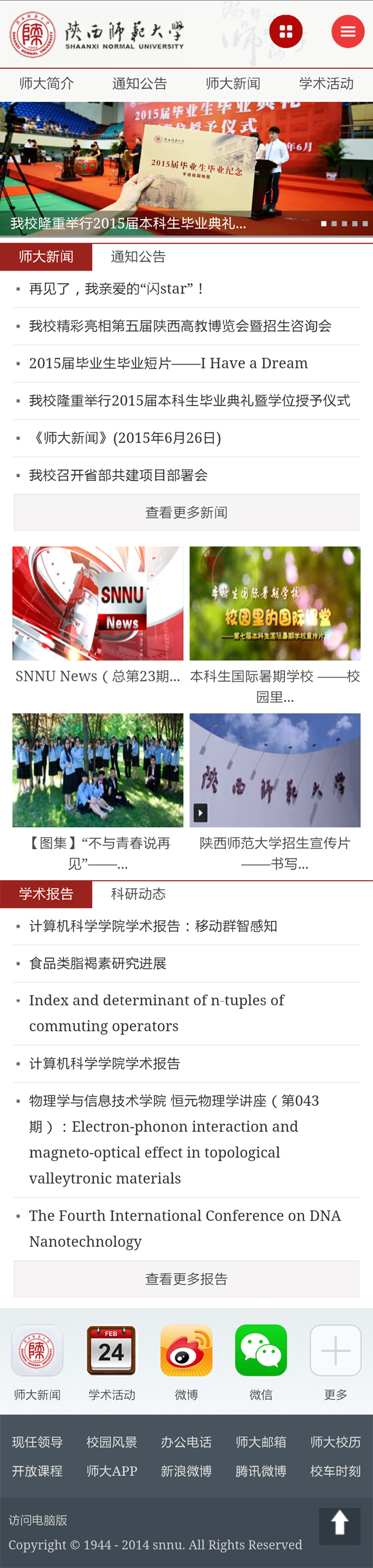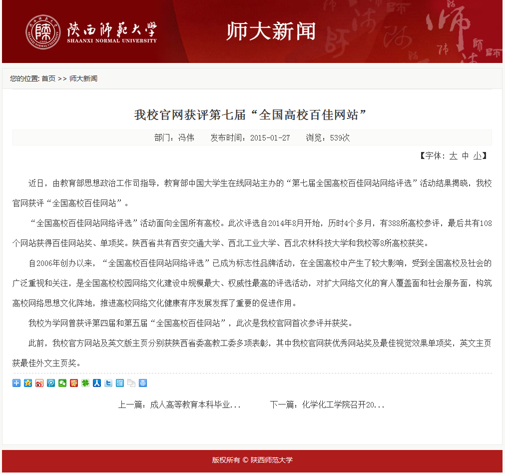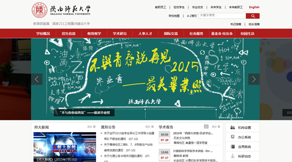 上線(xiàn)時(shí)間 :2014.01 關(guān)鍵詞:穩重、突破 網(wǎng)址:http://www.snnu.edu.cn