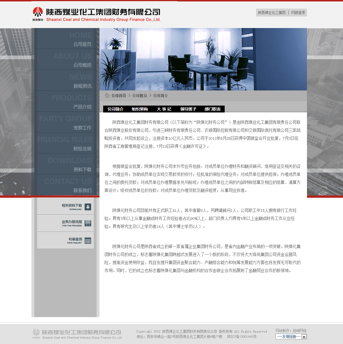 陜西煤業(yè)化工集團財務(wù)有限公司(以下簡(jiǎn)稱(chēng)為“陜煤化財務(wù)公司”)是由陜西煤業(yè)化工集團有限責任公司聯(lián)合陜西煤業(yè)股份有限公司,引進(jìn)三峽財務(wù)有限責任公司、農銀國際控股有限公司和交銀國際信托有限公司三家戰略投資者,共同發(fā)起設立,注冊資本10億元人民幣。