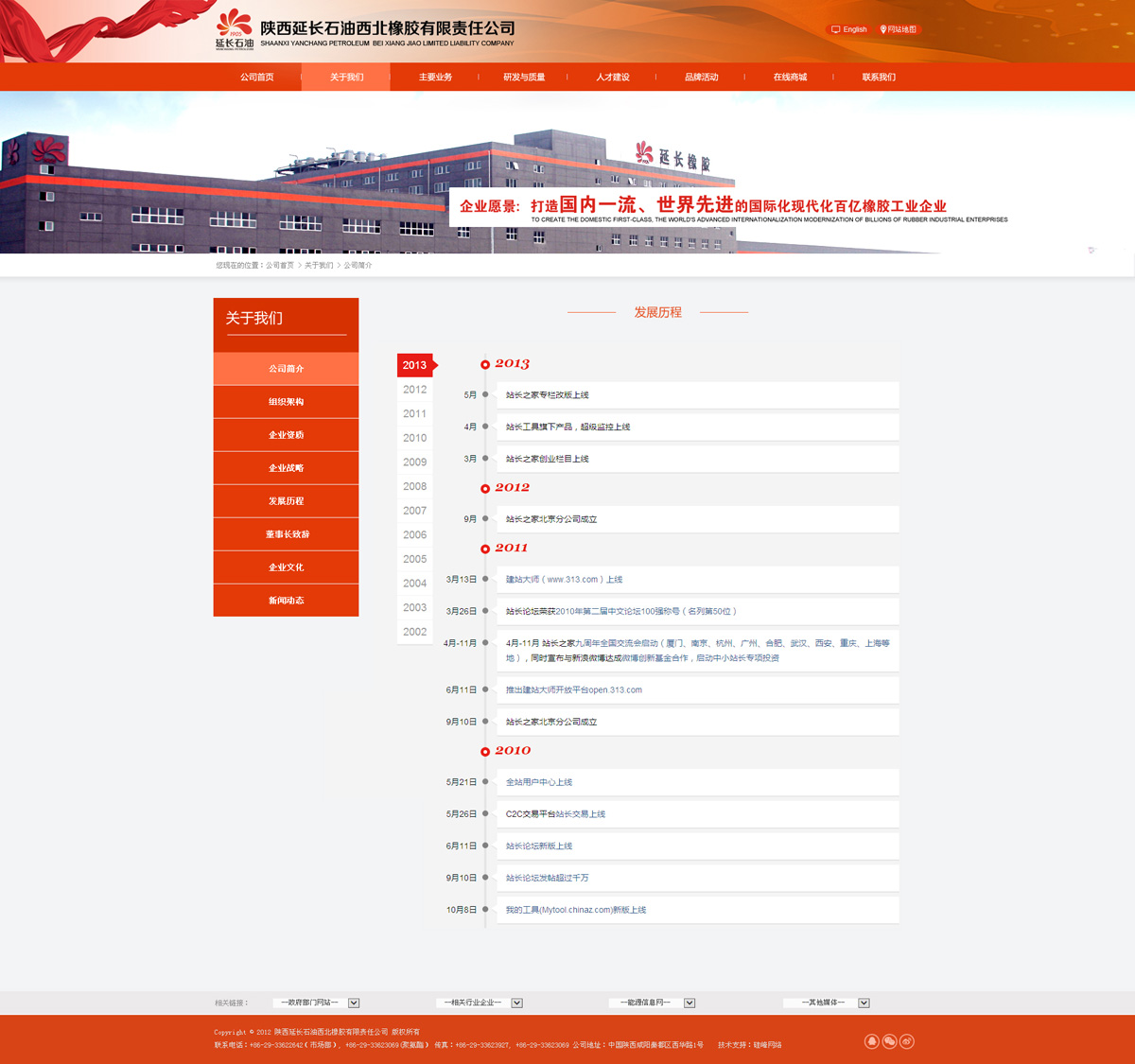 陜西延長(cháng)石油西北橡膠有限責任公司是陜西延長(cháng)石油(集團)有限責任公司的二級板塊公司,是全國唯一一家集天然膠種植與加工、子午線(xiàn)輪胎、橡膠制品制造銷(xiāo)售研發(fā)于一體的大型橡膠企業(yè)。位列中國膠管“十強企業(yè)”,中國橡膠制品“十強企業(yè)”,中國化工企業(yè)500強,中國橡膠工業(yè)百強企業(yè)第29位。