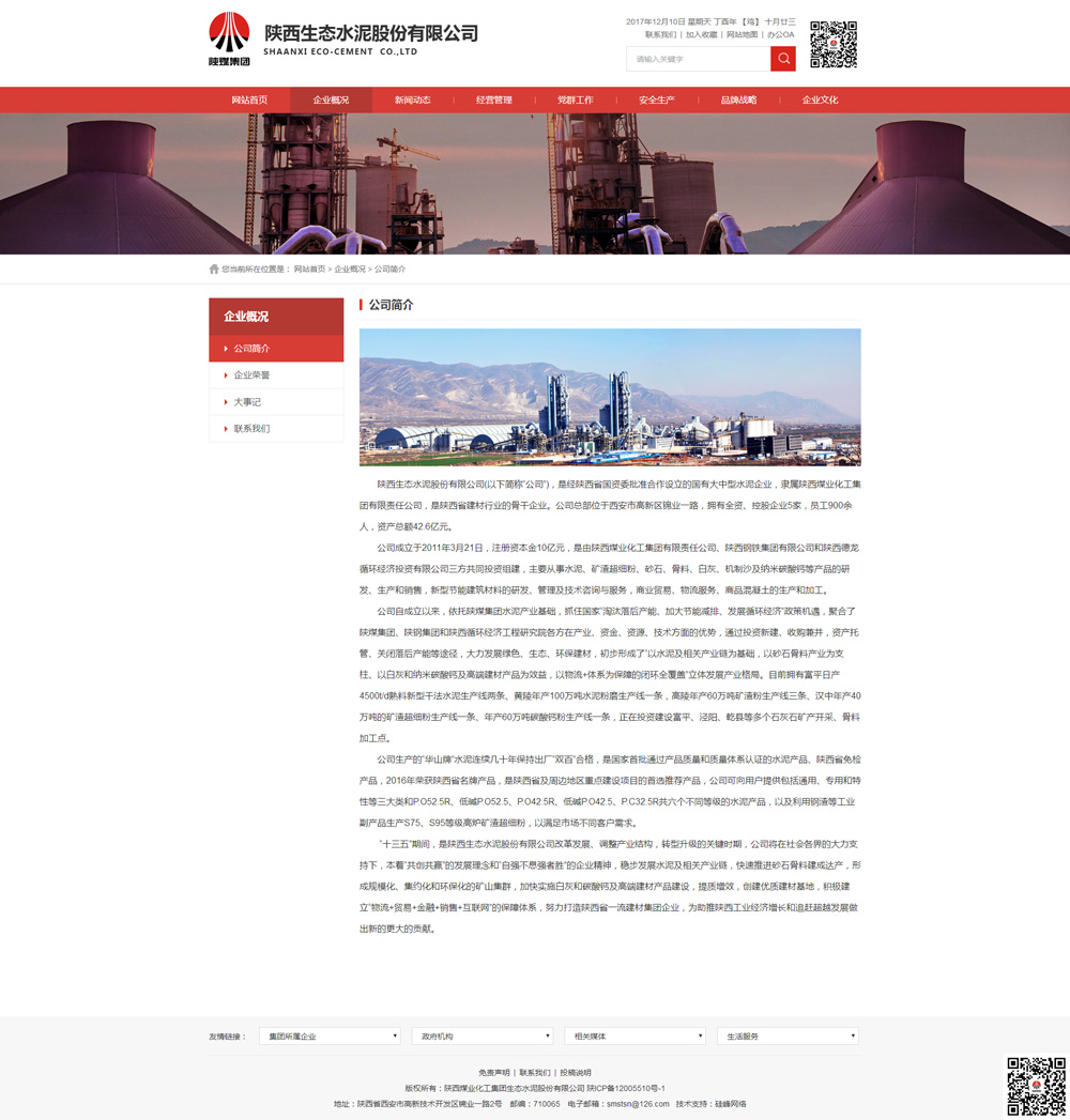 陜西生態(tài)水泥股份有限公司(以下簡(jiǎn)稱(chēng)“公司”),是經(jīng)陜西省國資委批準合作設立的國有大中型水泥企業(yè),隸屬陜西煤業(yè)化工集團有限責任公司,是陜西省建材行業(yè)的骨干企業(yè)。公司總部位于西安市高新區錦業(yè)一路,擁有全資、控股企業(yè)5家,員工900余人,資產(chǎn)總額42.6億元。